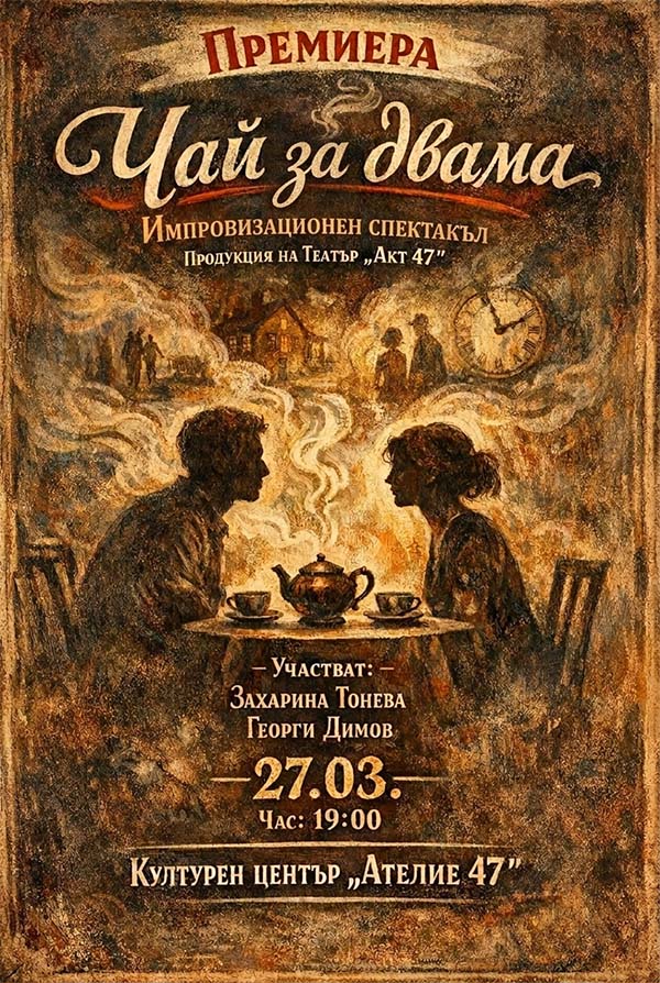 ИЗБРАНИ Импровизационен спектакъл „Чай за двама“ в културен център „Ателие 47“ Прочетете повече » март 23, 2026 Няма коментари