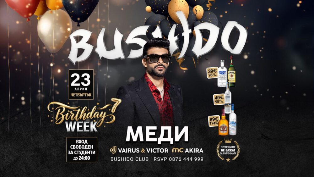 Bushido Birthday Week започва с една специална вечер и гост, който винаги вдига настроението на макс – Меди.